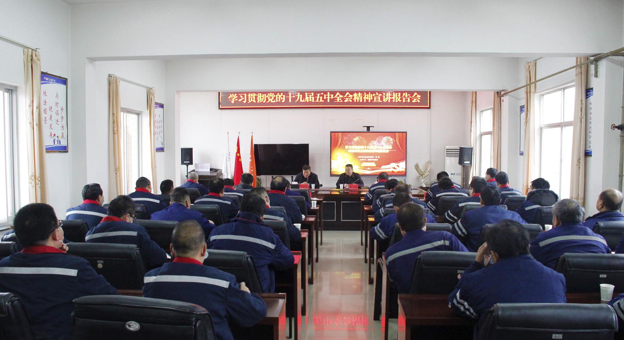 12月8日,學(xué)習(xí)貫徹黨的十九屆五中全會精神陜西有色金屬集團(tuán)宣講團(tuán)報(bào)告會在五洲礦業(yè)舉行。陜西有色金屬集團(tuán)宣講團(tuán)成員、董事陳濤作宣講報(bào)告,五洲礦業(yè)黨委書記、董事長張景奇主持。