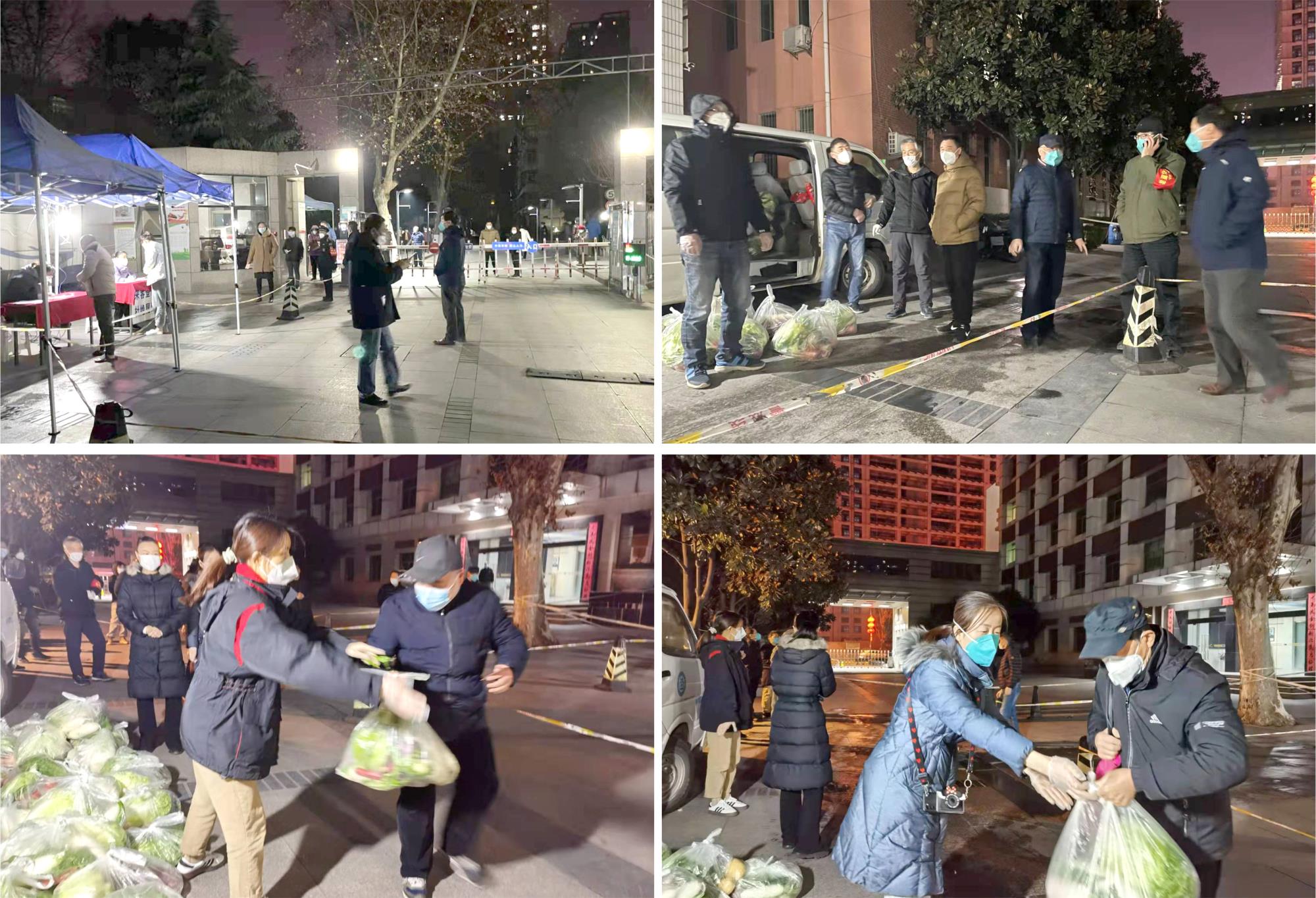 當(dāng)時(shí)恰逢住戶核酸采集進(jìn)入收尾階段,部分志愿者才脫下防護(hù)服,就戴上“紅袖章”,馬不停蹄地投入新一輪忙碌之中。在進(jìn)行短暫的分工安排后,大家各司其職、分頭行動(dòng),第一小組做好現(xiàn)場秩序維護(hù)、排隊(duì)距離管控,第二小組做好信息核對、核酸確認(rèn)、登記簽字,第三小組做好卸車搬運(yùn)、蔬菜分發(fā),針對前期進(jìn)度較慢的實(shí)際狀況,大家出謀劃策,優(yōu)化流程,領(lǐng)菜進(jìn)程明顯加快。下午六點(diǎn)半左右,已經(jīng)有居民排隊(duì)領(lǐng)到了第一份“愛心蔬菜包”,大家秩序井然,魚貫出入,到晚上九點(diǎn)多,絕大多數(shù)住戶都已領(lǐng)到,對于無人前來領(lǐng)取的住戶,志愿者們又逐戶打電話問詢核實(shí),對于有人居住但無法前來領(lǐng)取的住戶,志愿者們又火速開啟夜間送菜上門模式,確保做到全覆蓋,不漏一戶、不少一人。晚上十點(diǎn)多,在大家的共同努力下,500余份蔬菜按戶按份盡數(shù)發(fā)放完畢。志愿者劉丹說:“在寒冷的冬夜溫暖每一戶居民,用這么一種特殊的方式跨年,注定讓人難忘!”家屬院居民們也紛紛表達(dá)了對黨和政府的感謝以及對志愿者辛勤付出的贊揚(yáng),退休黨員趙全生同志表示:“年輕一代的西北地勘人在關(guān)鍵時(shí)刻沖向前、勇?lián)?dāng),好樣兒的!看到祖國的地勘事業(yè)后繼有人,我們老同志們感到很欣慰!”