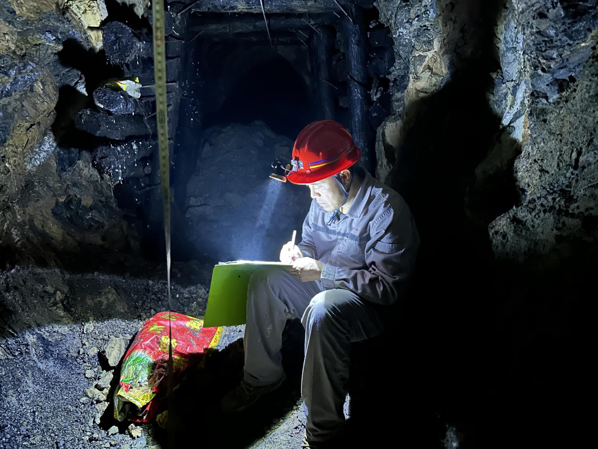 當寨子溝礦區(qū)樣品送檢后,坑道成了我的另一個課堂。師父教我測量各類產(chǎn)狀,教我展點和產(chǎn)狀,教我如何勾畫地質(zhì)界線……水珠從坑道頂板滴落,在礦燈光束里拉出銀線。師父的筆尖在巖壁上游走如活物,筆尖順層理滑動,在圖紙上旋出流暢的曲線?;璋倒饩€下,那墨線竟有了生命般微微搏動——巖石的密碼被解開一道縫隙,礦脈的暖流正滲出石壁。地質(zhì)錘叩擊巖壁的顫音未散,巖石紋層間簌簌剝落的碎屑里,恍有古河道裹挾風沙的呼嘯掠過指腹。
