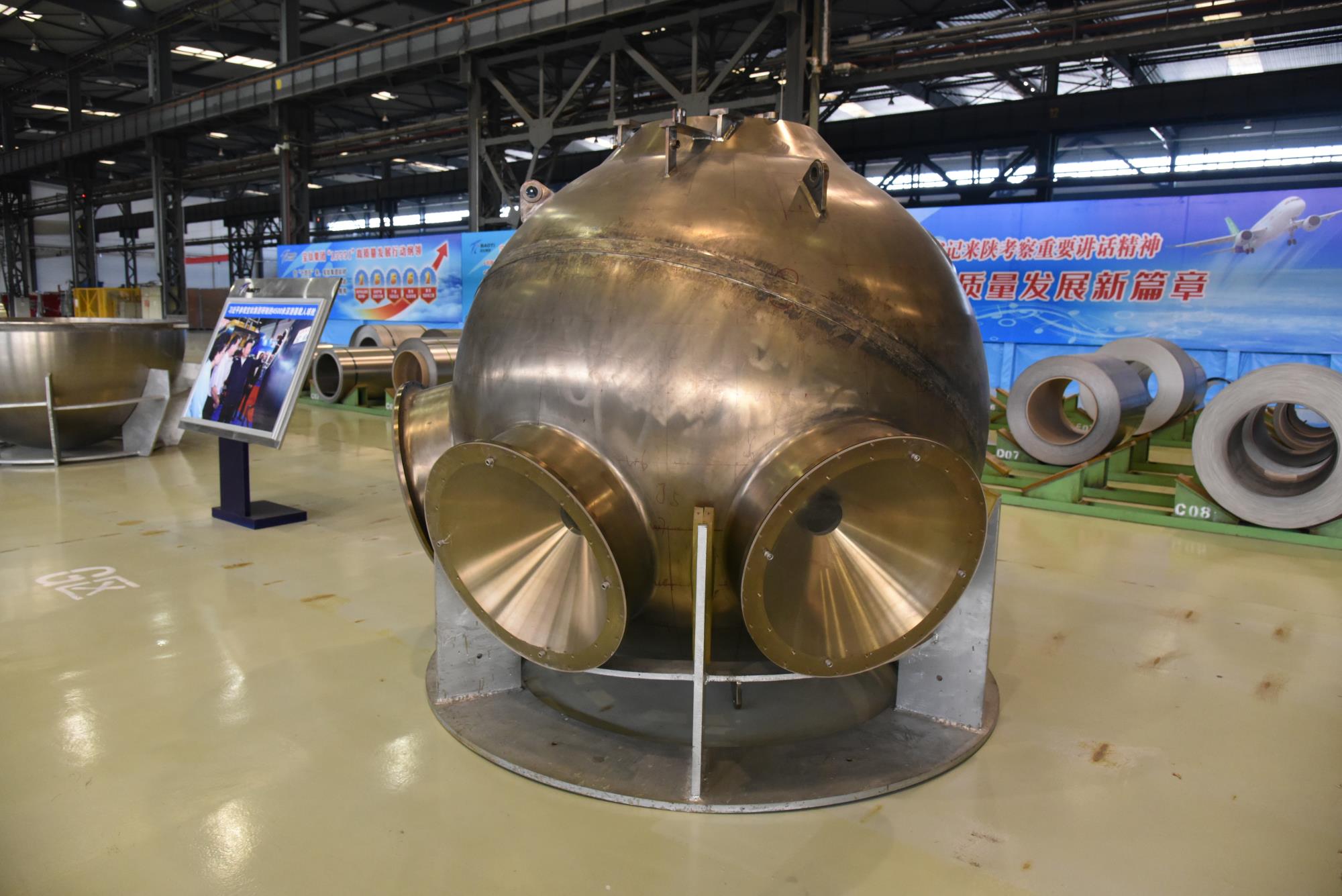 陜西有色寶鈦集團研制的萬米級載人潛水器鈦合金載人球艙。