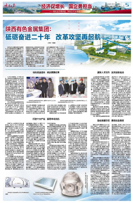 作為我國最大的以鈦及鈦合金為主的專業(yè)化稀有金屬生產(chǎn)科研基地,陜西有色金屬集團權(quán)屬企業(yè)寶鈦集團是世界第三、亞洲規(guī)模最大的鈦材加工企業(yè),年加工能力突破2萬噸,擁有兩家上市公司,被譽為“中國鈦城”,是中國鈦及鈦合金國標、國軍標、行標的主要制定者,為我國第一顆氫彈、第一艘核潛艇、第一顆軟著陸衛(wèi)星、4500米深潛器載人球艙及C919國產(chǎn)大飛機等大國重器的研制作出了貢獻。
