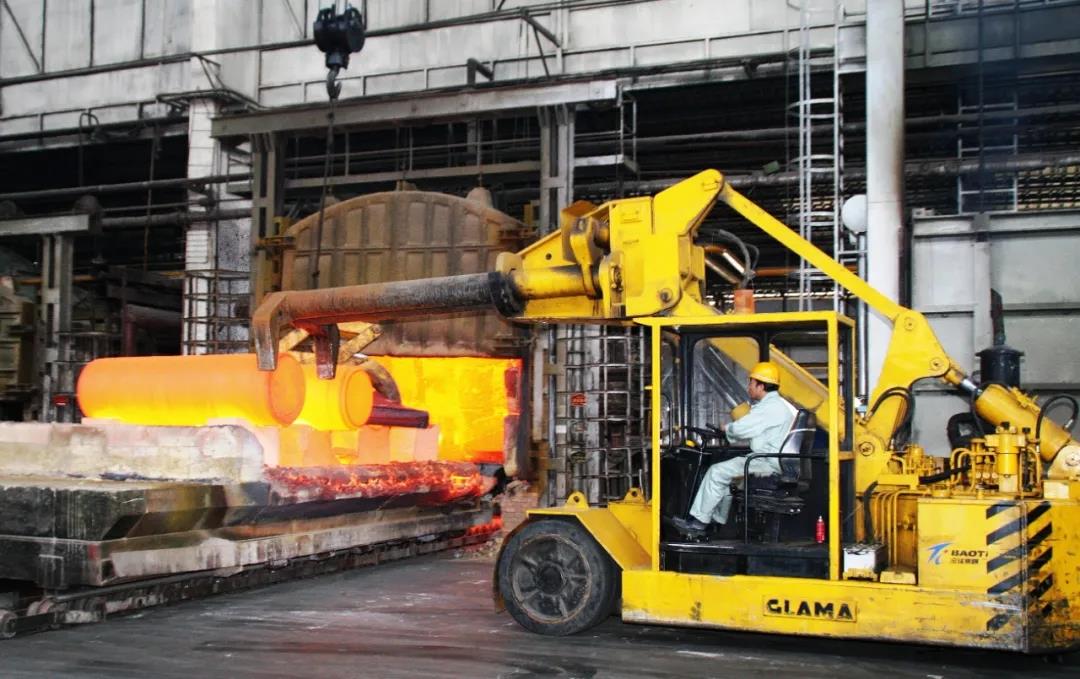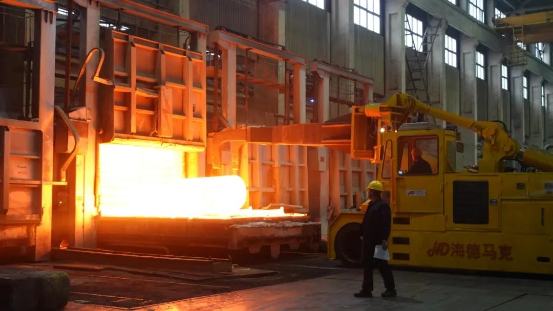 1月20日,記者在寶鈦集團(tuán)鍛造廠看到,火紅的鈦錠依次出爐,工人們有序忙碌著,現(xiàn)場(chǎng)一片火熱景象。