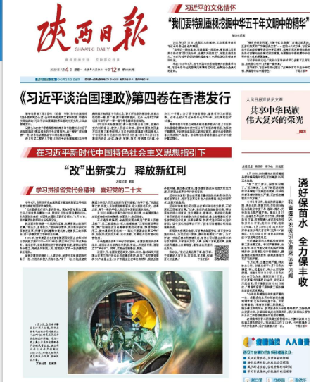 (原文鏈接:陜西日?qǐng)?bào)https://esb.sxdaily.com.cn/pc/content/202207/04/content_786748.html;