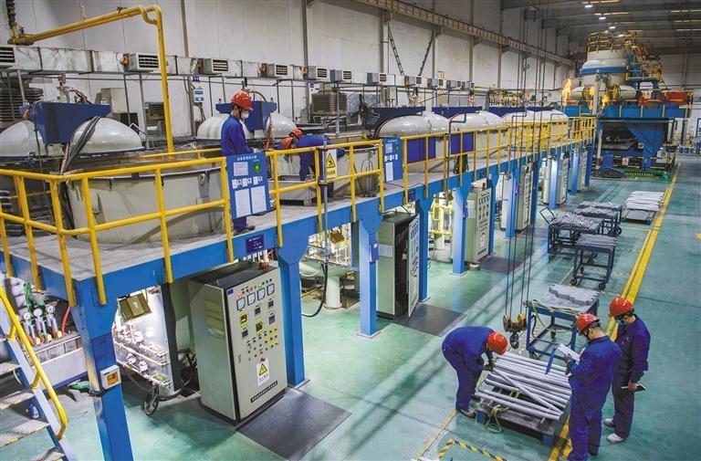 11月11日,在金堆城鉬業(yè)股份有限公司金屬分公司鉬制品分廠,工人正在進行中頻燒結(jié)設(shè)備的工藝巡檢、產(chǎn)品出裝、產(chǎn)品檢驗。今年前10月,金堆城鉬業(yè)股份有限公司金屬分公司主營業(yè)務(wù)收入同比增長44.3%,利潤總額同比增長47.2%,累計產(chǎn)量同比增長17.43%,累計銷量同比增長10.13%,鉬制品產(chǎn)量創(chuàng)歷史新高,同比增長100%。 本報記者 袁景智攝