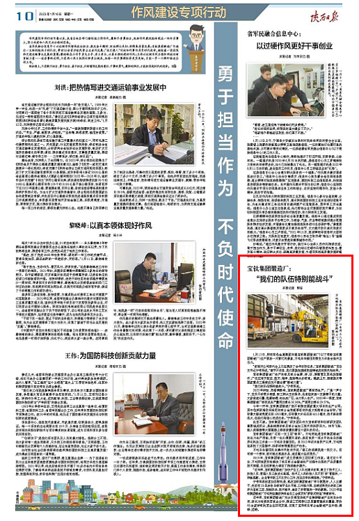 “近年來,寶鈦集團鍛造廠加快產(chǎn)業(yè)工人隊伍建設(shè)改革,建立了技術(shù)工人、科技人員、管理人員三條成長通道。技術(shù)工人和科技人員不用‘?dāng)D’管理崗,一樣拿高薪。企業(yè)青年職工不僅安心工作,而且自學(xué)熱情高漲?!睂巶ボ娬f。