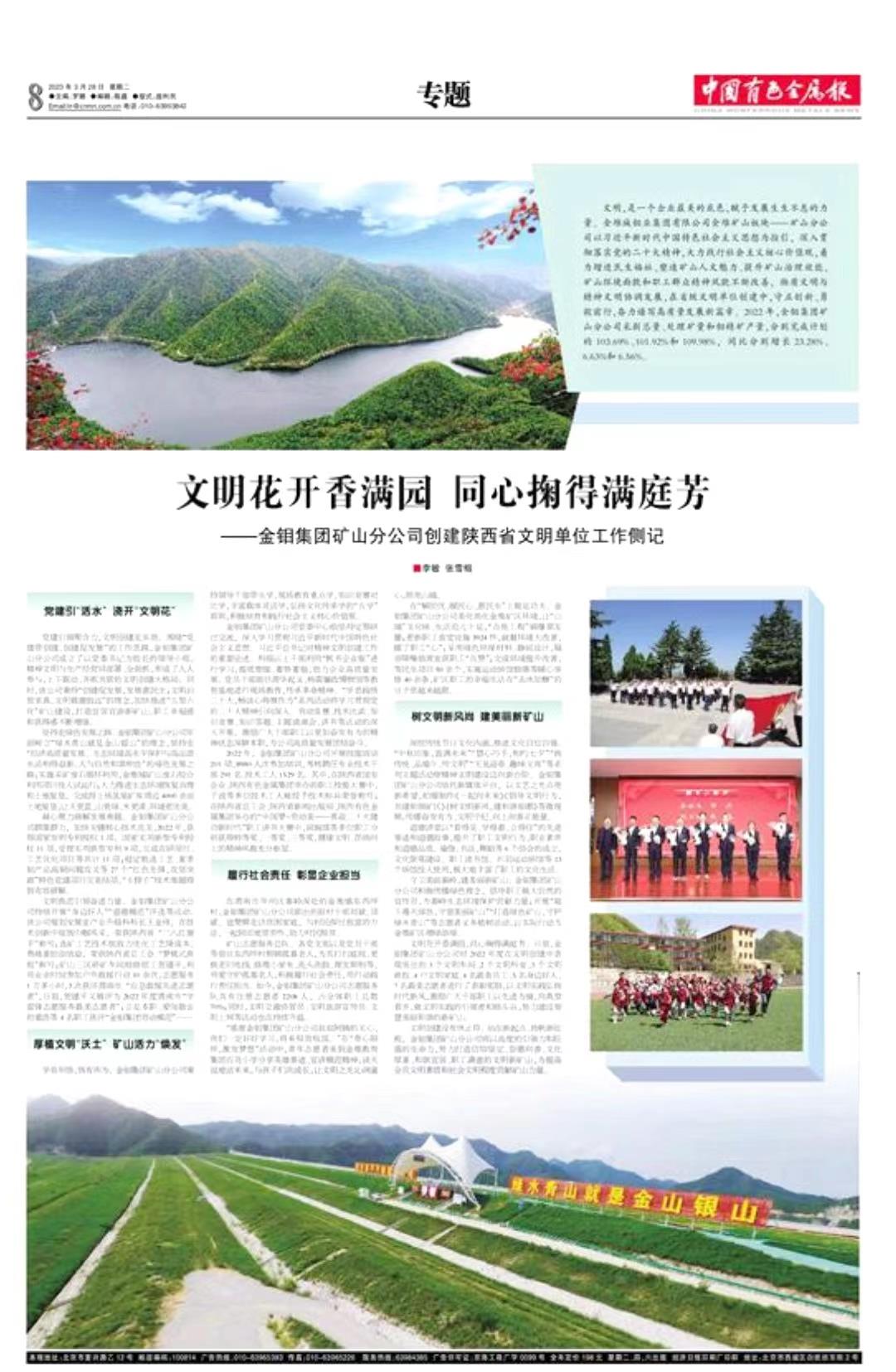 文明,是一個企業(yè)最美的底色,賦予發(fā)展生生不息的力量。金堆城鉬業(yè)集團(tuán)有限公司金堆礦山板塊——礦山分公司以習(xí)近平新時代中國特色社會主義思想為指引,深入貫徹落實黨的二十大精神,大力踐行社會主義核心價值觀,著力增進(jìn)民生福祉、塑造礦山人文魅力、提升礦山治理效能,礦山環(huán)境面貌和職工群眾精神風(fēng)貌不斷改善,物質(zhì)文明與精神文明協(xié)調(diào)發(fā)展,在省級文明單位創(chuàng)建中,守正創(chuàng)新、勇毅前行,奮力譜寫高質(zhì)量發(fā)展新篇章。2022年,金鉬集團(tuán)礦山分公司采剝總量、處理礦量和鉬精礦產(chǎn)量,分別完成計劃的103.69%、101.92%和109.98%,同比分別增長23.28%、6.63%和6.56%。