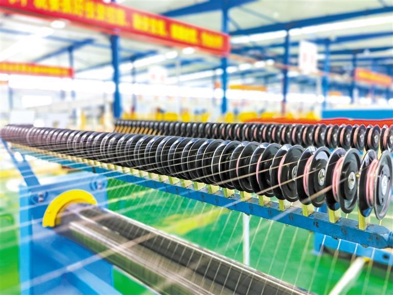 4月6日,在正威寶雞銅基新材料產業(yè)基地項目年產10萬噸精密銅線生產車間內,銅桿原材料經過精密儀器加工后,變成了精密銅線。 本報記者 李宛嶸攝