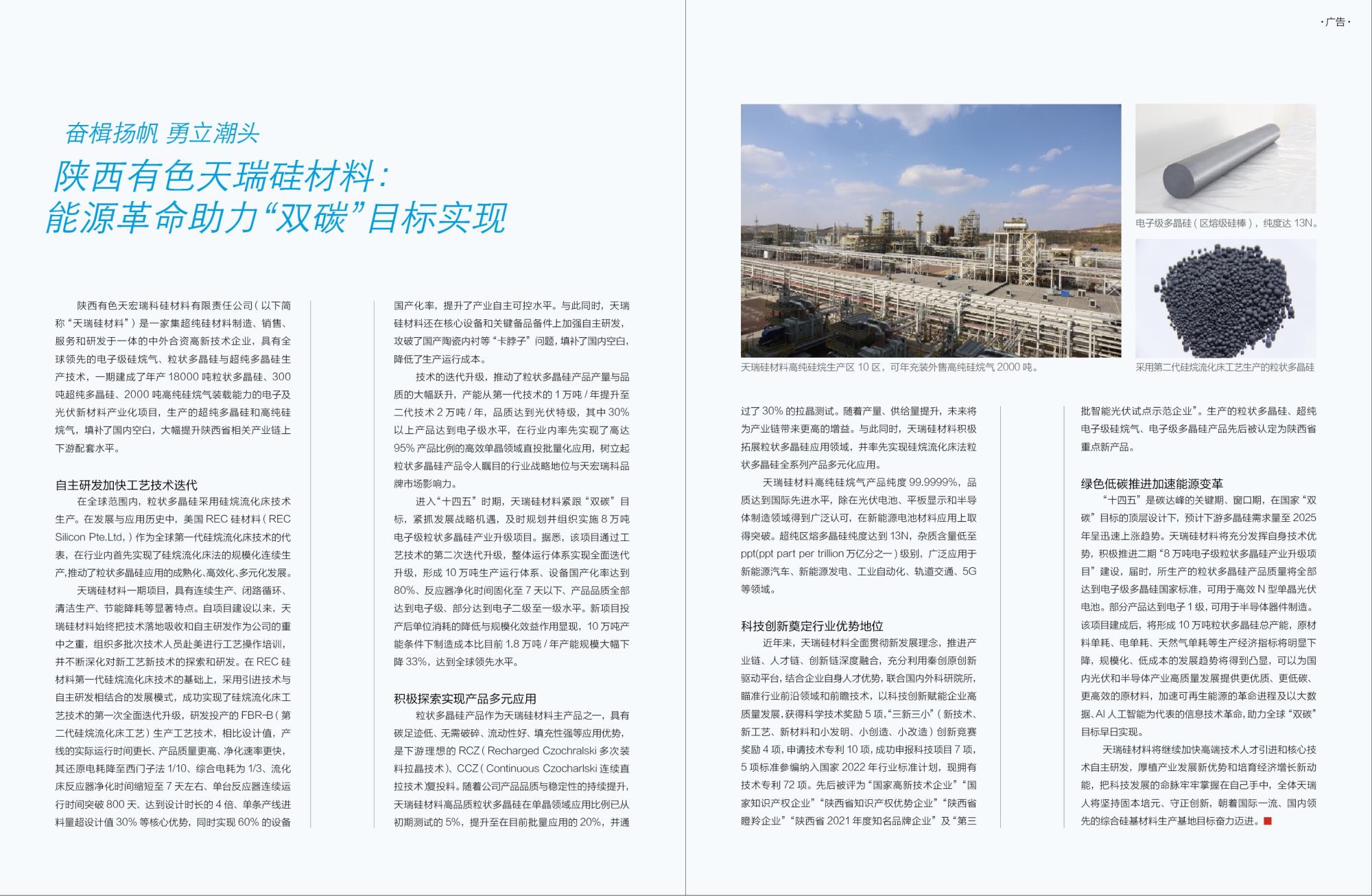 陜西有色天宏瑞科硅材料有限責任公司(以下簡稱“天瑞硅材料”)是一家集超純硅材料制造、銷售、服務和研發(fā)于一體的中外合資高新技術企業(yè),具有全球領先的電子級硅烷氣、粒狀多晶硅與超純多晶硅生產技術,一期建成了年產18000噸粒狀多晶硅、300噸超純多晶硅、2000噸高純硅烷氣裝載能力的電子及光伏新材料產業(yè)化項目,生產的超純多晶硅和高純硅烷氣,填補了國內空白,大幅提升陜西省相關產業(yè)鏈上下游配套水平。