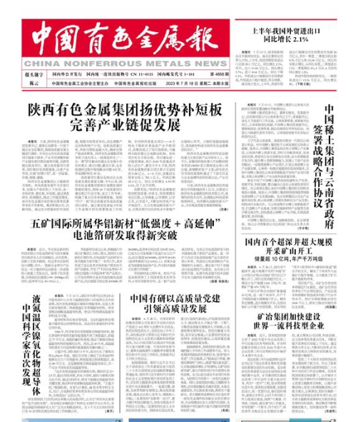 【學(xué)思想 強黨性 重實踐 建新功】陜西有色金屬集團:揚優(yōu)勢補短板 完善產(chǎn)業(yè)鏈促發(fā)展|陜西省_新浪財經(jīng)_新浪網(wǎng) (sina.com.cn, http://sn.people.com.cn/n2/2023/0707/c186331-40485571.html ;https://paper.cnmn.com.cn/Content.aspx?id=180448&q=4868&v=1 )
