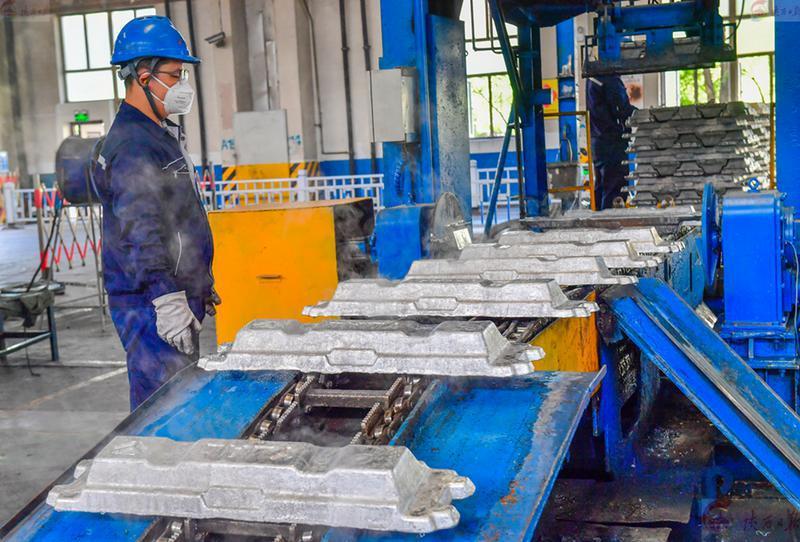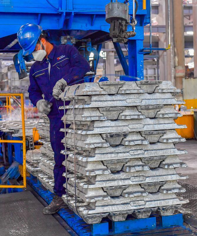 6月12日,在陜西有色榆林新材料集團鑄造車間,工人正進行入鋁作業(yè)。