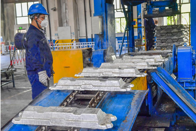 榆林新材料集團(tuán)鑄造車間鑄造工正在查看鋁錠表觀質(zhì)量