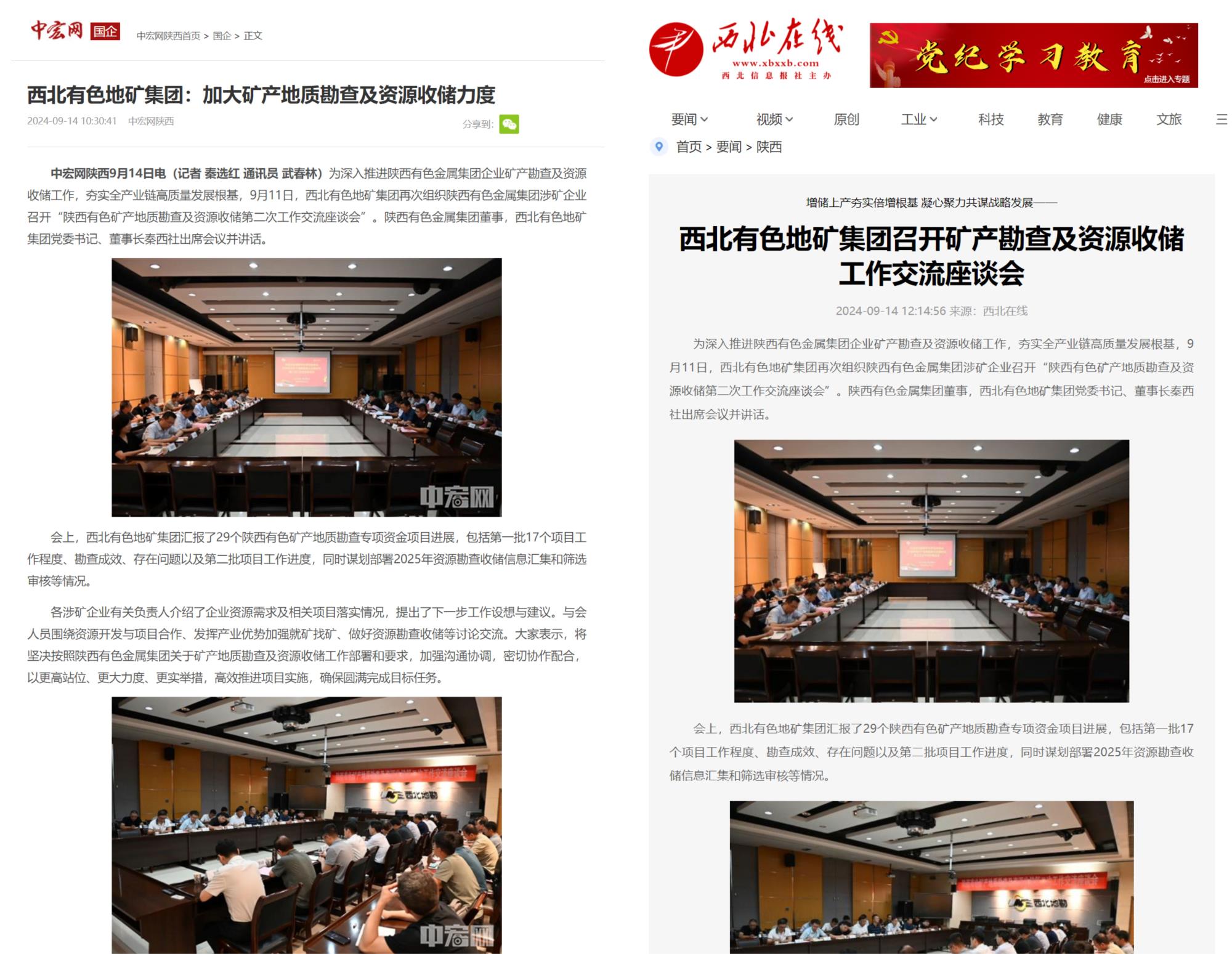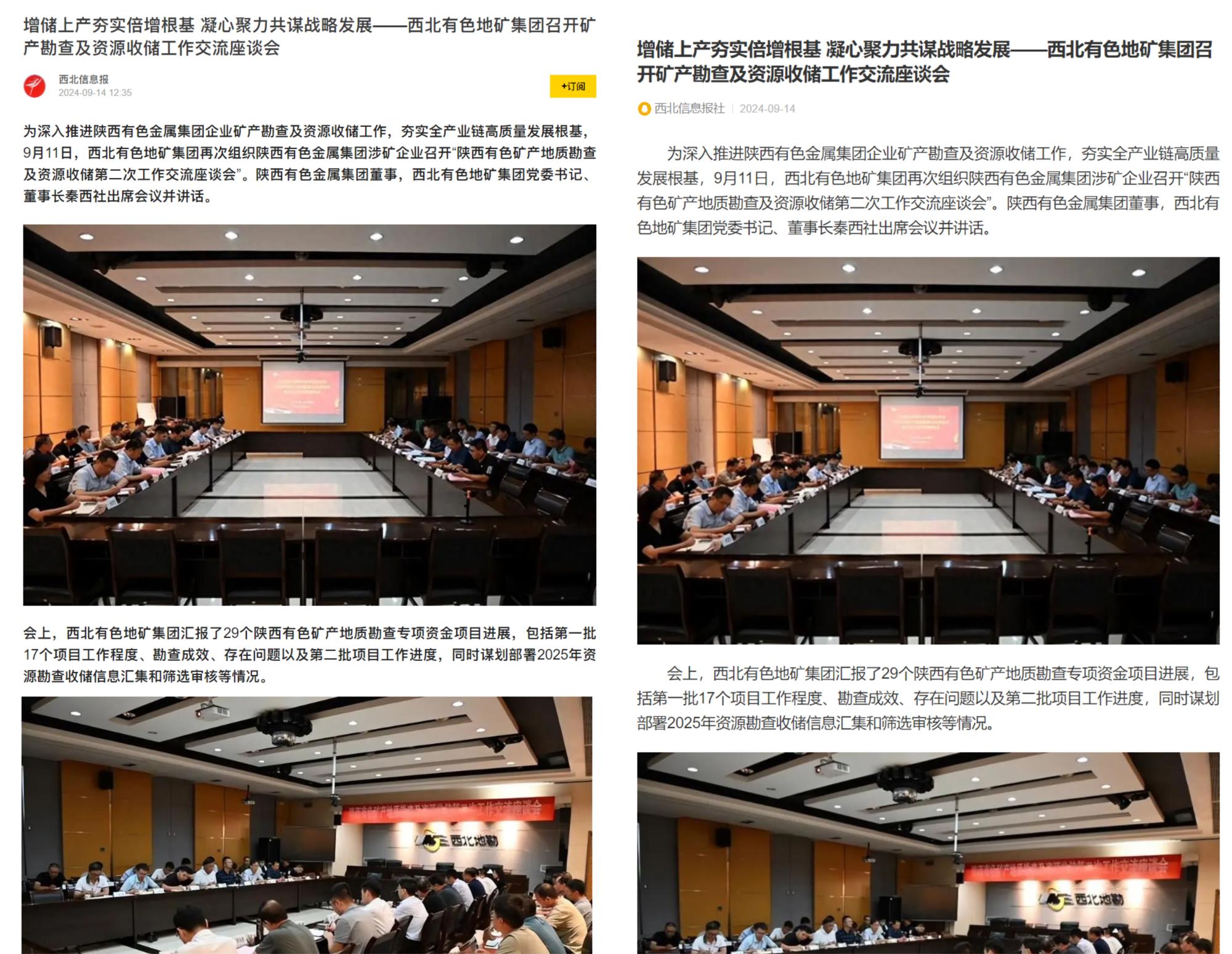 近日,地礦集團組織陜西有色金屬集團涉礦企業(yè)召開“礦產(chǎn)地質(zhì)勘查及資源收儲第二次工作交流座談會”,全面總結(jié)陜西有色29個礦產(chǎn)地質(zhì)勘查專項資金項目進展,謀劃2025年資源勘查收儲信息匯集和篩選審核等工作。陜西有色金屬集團以“國之大者”的使命擔當,堅定不移加大礦產(chǎn)地質(zhì)勘查及資源收儲力度的經(jīng)驗做法和有關(guān)項目進展引發(fā)社會媒體關(guān)注。