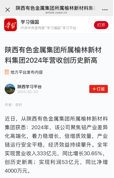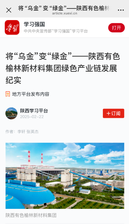 2月22日,中共中央宣傳部“學(xué)習(xí)強國”學(xué)習(xí)平臺連續(xù)刊發(fā)兩篇報道介紹了榆林新材料集團2024年生產(chǎn)經(jīng)營和綠色產(chǎn)業(yè)鏈發(fā)展情況