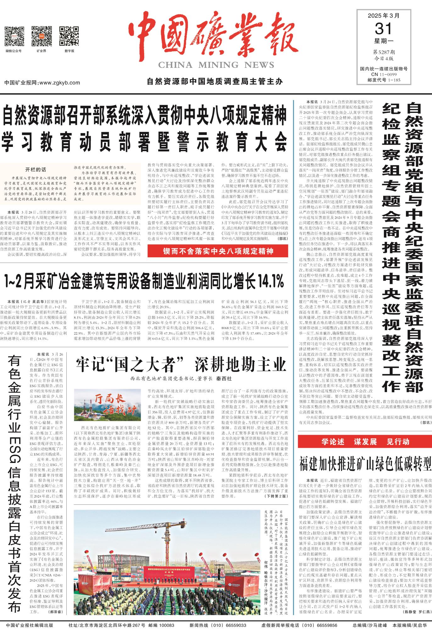 近期,《中國礦業(yè)報》開設了“廳局長話找礦”欄目。該欄目邀請各?。▍^(qū)、市)自然資源主管部門、地勘單位負責人撰寫署名文章,深入交流央地企合作新機制下“十四五”找礦成績和經(jīng)驗,并謀劃展望“十五五”找礦工作。2025年3月31日,《中國礦業(yè)報》頭版刊出了該欄目的第21篇文章,即地礦集團、黃金集團黨委書記、董事長秦西社的署名文章。全文如下: