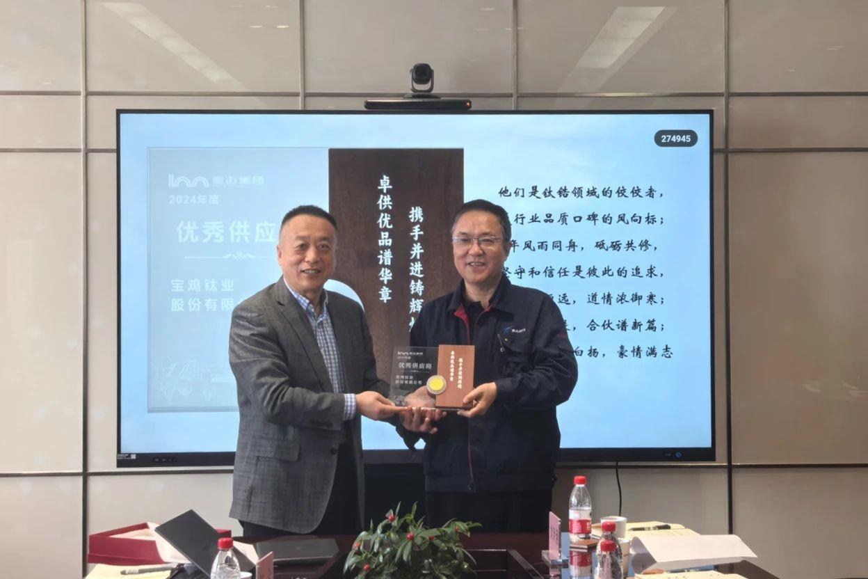 憑借卓越的產(chǎn)品質(zhì)量、穩(wěn)定的供貨能力及高效的服務(wù)水平,寶鈦股份在山東豪邁集團(tuán)兩年一度、覆蓋上萬家供應(yīng)商的評選中脫穎而出,首次獲評“2024年度優(yōu)秀供應(yīng)商”,這標(biāo)志著雙方合作邁上了新高度。未來,寶鈦股份與山東豪邁集團(tuán)將攜手在高端裝備制造、綠色供應(yīng)鏈等領(lǐng)域探索創(chuàng)新,共促高質(zhì)量發(fā)展。