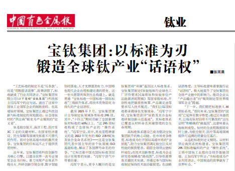 從追趕標(biāo)準(zhǔn)到定義規(guī)則,從材料供應(yīng)商到系統(tǒng)構(gòu)建者,寶鈦集團(tuán)用295項標(biāo)準(zhǔn)編織的產(chǎn)業(yè)“操作系統(tǒng)”,正將中國鈦工業(yè)推向全球價值鏈頂端。正如馮軍寧所言:“當(dāng)標(biāo)準(zhǔn)成為產(chǎn)業(yè)共同語言,中國制造的故事就有了世界聽眾?!?