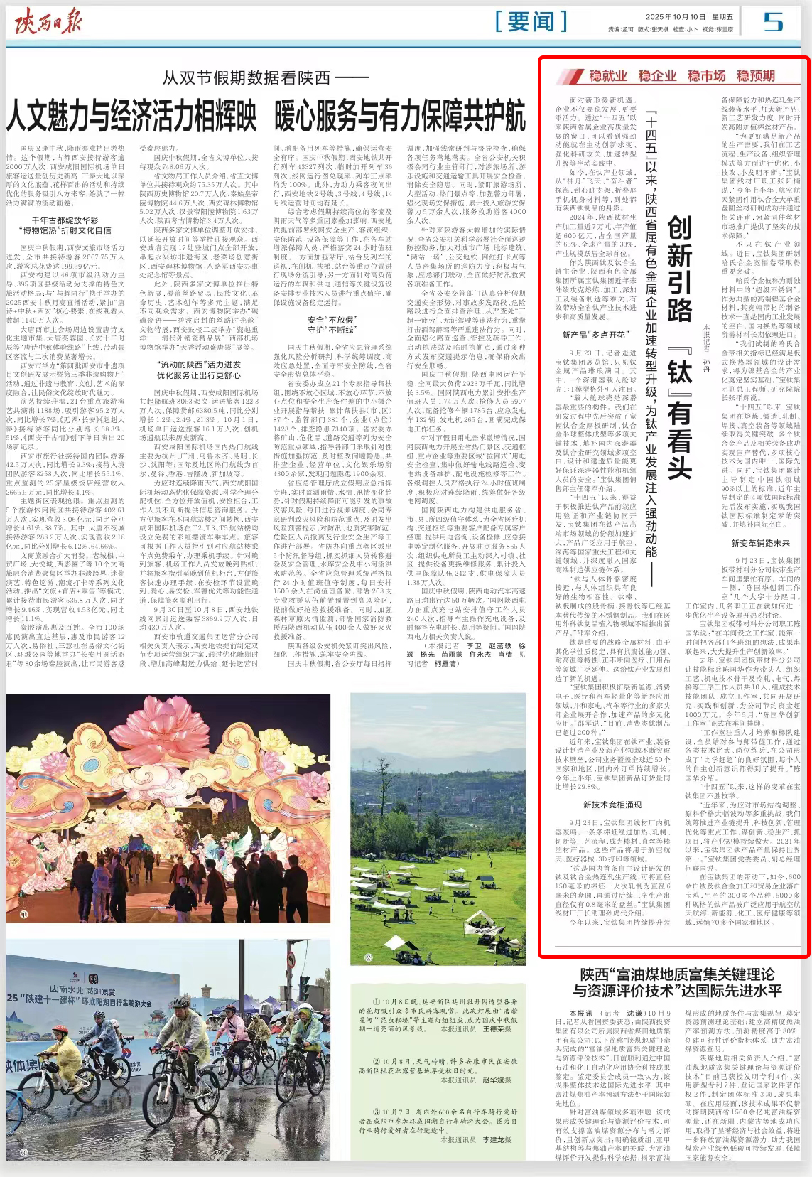 陜西日?qǐng)?bào)、群眾新聞:“十四五”以來(lái),陜西省屬有色金屬企業(yè)加速轉(zhuǎn)型升級(jí),為鈦產(chǎn)業(yè)發(fā)展注入強(qiáng)勁動(dòng)能—— 創(chuàng)新引路 “鈦”有看頭