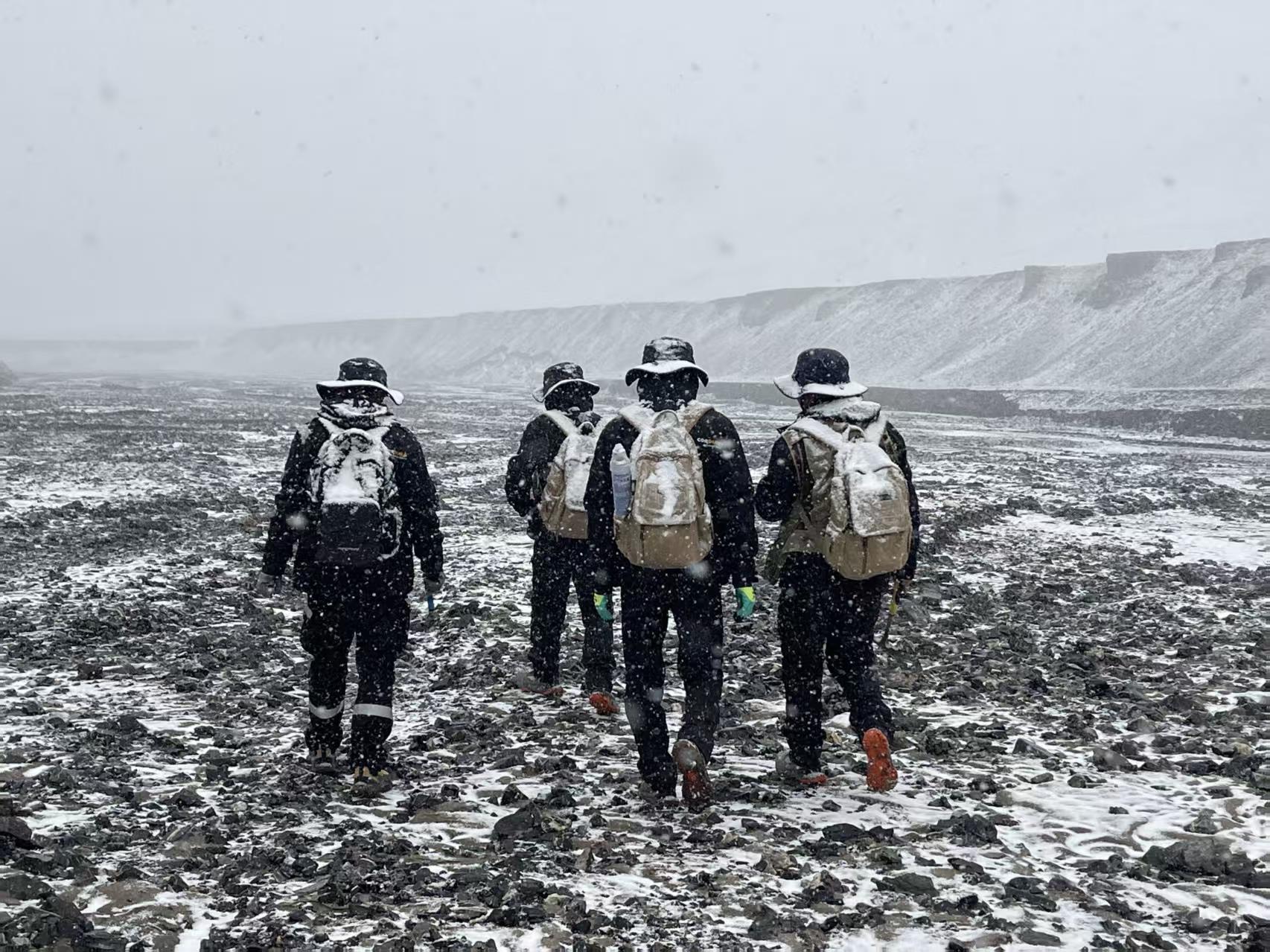 《中國(guó)有色金屬報(bào)》11月19日訊:日前,在新疆一處多金屬礦普查項(xiàng)目現(xiàn)場(chǎng),西北有色地礦集團(tuán)717總隊(duì)公司的地質(zhì)工作者們?cè)谕瓿傻刭|(zhì)剖面測(cè)制任務(wù)后的歸途中,遭遇突如其來(lái)的風(fēng)雪。漫天飛雪裹挾著碎石,撲打在荒原與他們身上。這支“地質(zhì)鐵軍”踏險(xiǎn)而行,以堅(jiān)定的腳步在極端環(huán)境中執(zhí)著向前。他們頂住的,是飛雪的凜冽;他們肩負(fù)的,是摸清國(guó)家礦產(chǎn)資源家底的使命。