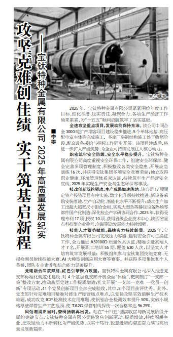 中國(guó)有色金屬報(bào):攻堅(jiān)克難創(chuàng)佳績(jī) 實(shí)干筑基啟新程——寶鈦特種金屬有限公司2025年高質(zhì)量發(fā)展紀(jì)實(shí)