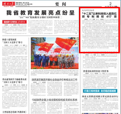陜西日報(bào)、中國廣播網(wǎng)、鳳凰網(wǎng):陜西有色集團(tuán)“十二五”以來科技投入超百億 獲專利授權(quán)417項(xiàng)
