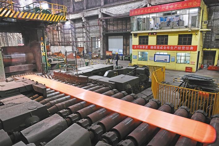 11月26日,工人在寶鈦集團寬厚板材料公司三米三熱軋生產線上作業(yè)。寶鈦集團有限公司是