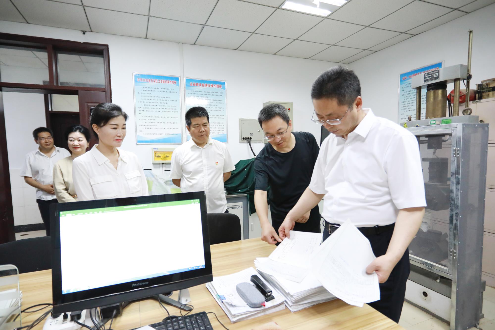 在參觀試驗(yàn)室時(shí),吳群英詳細(xì)了解了建筑原材料試驗(yàn)、主體結(jié)構(gòu)試驗(yàn)和鋼結(jié)構(gòu)檢測(cè)的增資擴(kuò)項(xiàng)工作,對(duì)試驗(yàn)室覆蓋巖土工程試驗(yàn)基床系數(shù)、熱物理、大壓力直剪等全參數(shù)特殊項(xiàng)目?jī)?yōu)勢(shì)給與了充分肯定。