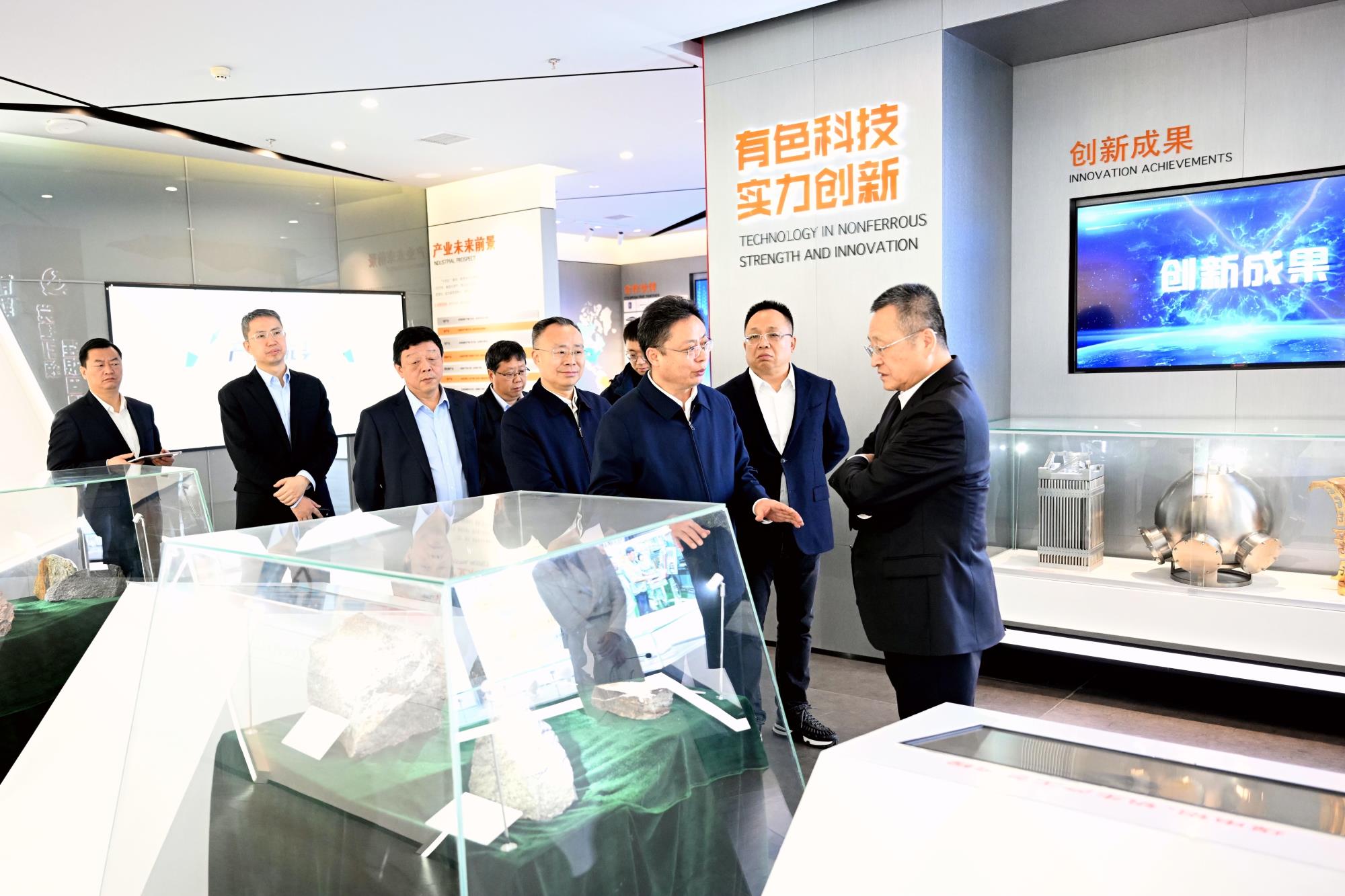 座談會(huì)前,葛紅林一行在吳群英等人陪同下參觀了陜西有色金屬集團(tuán)展廳,詳細(xì)了解了集團(tuán)公司企業(yè)概況、發(fā)展歷程、創(chuàng)新產(chǎn)品、資源稟賦、黨建工作等情況。