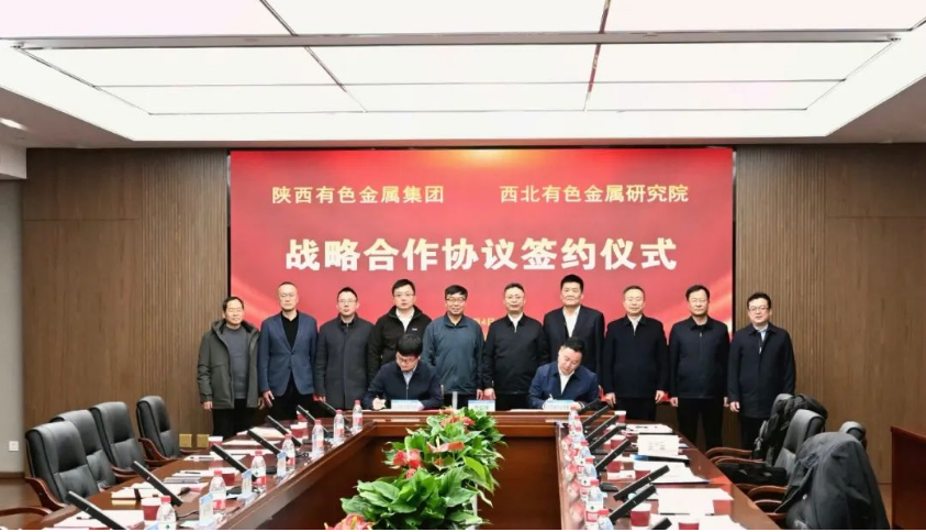 2月4日,陜西有色金屬集團與西北有色金屬研究院戰(zhàn)略合作協(xié)議簽約儀式在西北有色金屬研究院創(chuàng)新大樓會議室舉行。中國工程院院士、西北有色金屬研究院院長張平祥,陜西有色金屬集團黨委書記、董事長吳群英出席儀式并見簽。西北有色金屬研究院黨委書記李建峰,陜西有色金屬集團黨委副書記、總經(jīng)理莫勇代表雙方簽約。
