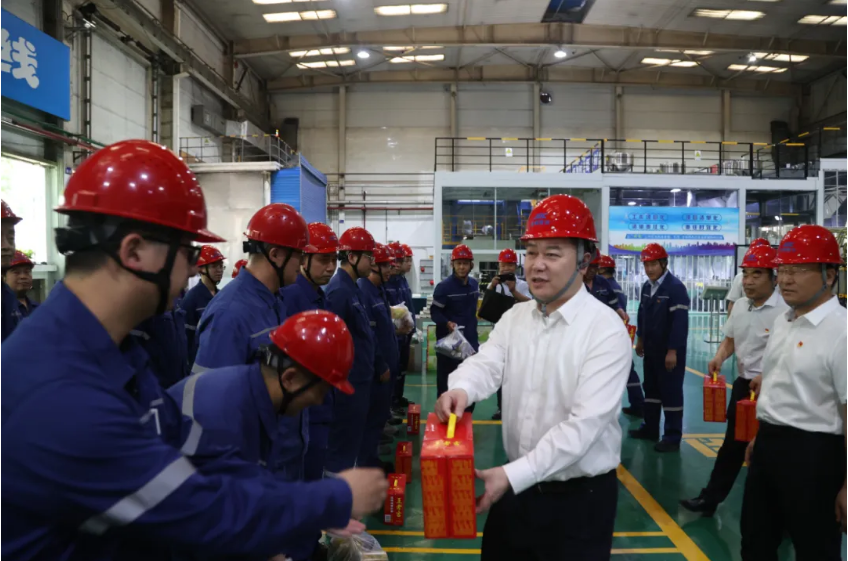 會前,莫勇一行到金屬分公司鉬粉分廠C區(qū)看望慰問生產(chǎn)一線職工,將防暑降溫物品一一送到大家手中,對他們克服高溫、辛勤工作表示感謝,叮囑大家在保證好安全生產(chǎn)的同時把身體健康放在首位。
