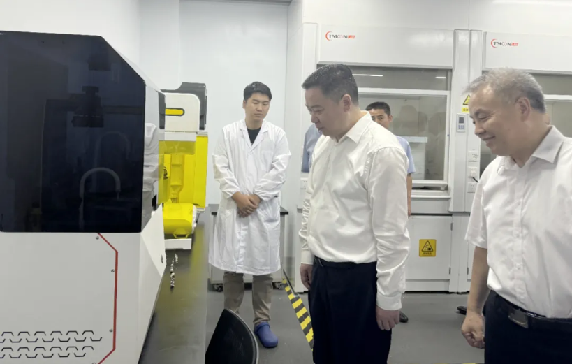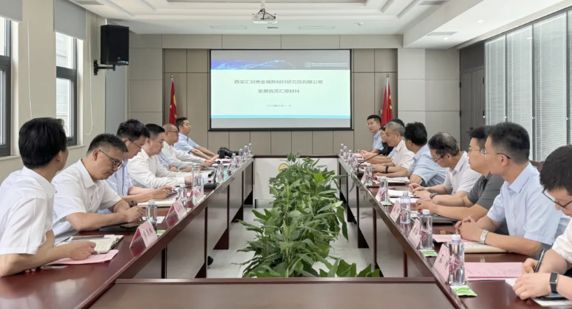 莫勇一行深入西安匯創(chuàng)公司產(chǎn)品展廳、掃描電鏡及3D打印表面處理室、貴金屬分析儀器室、貴金屬氫能催化研究室及金屬3D打印研究室現(xiàn)場了解企業(yè)發(fā)展和生產(chǎn)經(jīng)營等情況,并同公司領導班子座談交流。