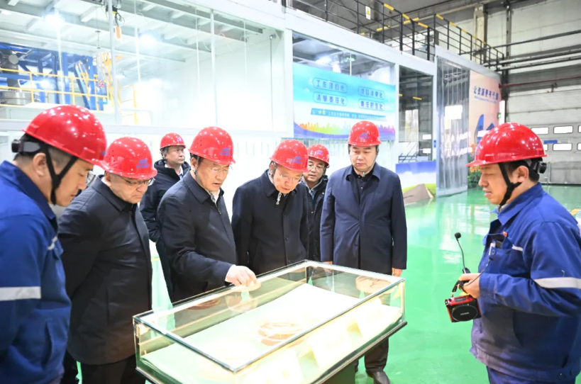 座談會前,孫繼洲一行參觀了金鉬集團(tuán)金鉬股份企業(yè)展廳,深入鉬金屬材料工業(yè)園鉬粉車間、鉬制品車間等了解鉬粉生產(chǎn)工藝、主要產(chǎn)品等情況。隨后,孫繼洲一行赴陜西有色金屬集團(tuán)總部,參觀了集團(tuán)展廳,全面了解了陜西有色金屬集團(tuán)的發(fā)展歷程、科技創(chuàng)新、黨建引領(lǐng)、發(fā)展愿景以及社會責(zé)任履行等情況。