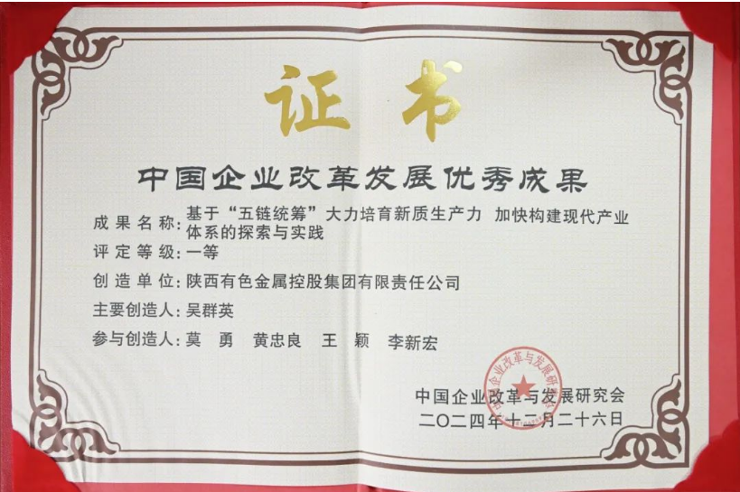 2月22日,由中國企業(yè)改革與發(fā)展研究會(huì)(下稱“中企研”)主辦的國有企業(yè)改革深化提升行動(dòng)研討會(huì)和第八屆中國企業(yè)改革發(fā)展峰會(huì)暨成果發(fā)布會(huì)在北京舉行。陜西有色金屬集團(tuán)應(yīng)邀參加并作為唯一一家地方國有企業(yè)代表在研討會(huì)上作交流發(fā)言。集團(tuán)公司黨委委員、副總經(jīng)理黃忠良出席會(huì)議、交流發(fā)言并領(lǐng)取“中國企業(yè)改革發(fā)展優(yōu)秀成果一等獎(jiǎng)”證書。