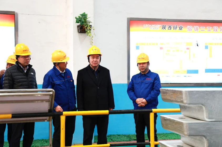 莫勇一行在陜西鋅業(yè)黨委副書記、總經(jīng)理徐靖陪同下深入熔鑄工序、鋅基合金生產(chǎn)線、渣處理工區(qū)、硫酸車間調研,與現(xiàn)場人員深入交流,詳細了解生產(chǎn)工藝、生產(chǎn)流程、現(xiàn)場管理、發(fā)展規(guī)劃等情況。
