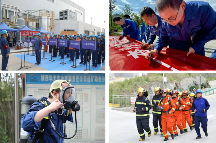 “安全生產(chǎn)月”期間,金鉬股份化學分公司開展了一場模擬實戰(zhàn)的危險化學品泄漏應急演練,此次演練由渭南高新區(qū)安全生產(chǎn)委員會辦公室、渭南高新區(qū)應急管理局主辦,金鉬股份化學分公司承辦,渭南市生態(tài)環(huán)境局高新分局、渭南高新區(qū)消防救援大隊、渭南市骨科醫(yī)院協(xié)辦,檢驗了應急預案的合規(guī)性、時效性,提高了該公司與政府監(jiān)管部門等單位協(xié)同配合效率,進一步提升了全員應急處置能力。金鉬汝陽開展了以“學悟、宣貫、承諾、踐行”四位一體模式的系列活動,構筑起群防群治的安全防線。華光公司選礦助劑分公司以“強化安全技能,筑牢生命防線”為主題,開展“安全生產(chǎn)月”系列活動。金鉬股份礦山分公司承辦開展了2025年渭南市民爆行業(yè)應急救援演練的安全生產(chǎn)演練,以“叉車在搬運油相噸裝桶過程中掉落與地面發(fā)生碰撞,導致罐體溶液泄漏并起火”為模擬場景,為全市民爆行業(yè)高質(zhì)量發(fā)展貢獻國企力量。