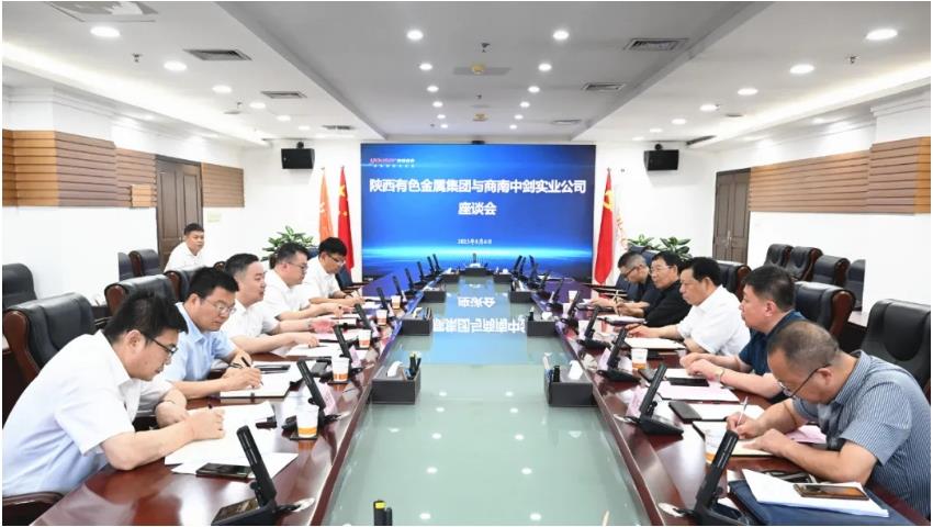8月6日,陜西有色金屬集團(tuán)黨委副書記、董事、總經(jīng)理莫勇在集團(tuán)總部與商南中劍實(shí)業(yè)公司董事長(zhǎng)蔡華憲一行就合作共贏、做大做強(qiáng)硅產(chǎn)業(yè)鏈座談交流。集團(tuán)公司副總經(jīng)理蘇旭盛參加座談。