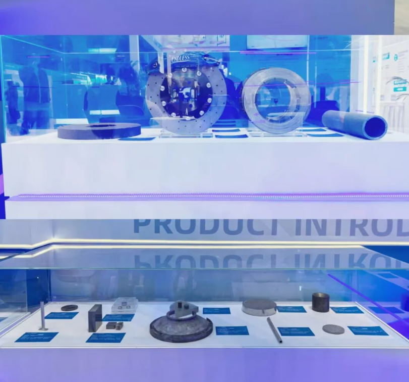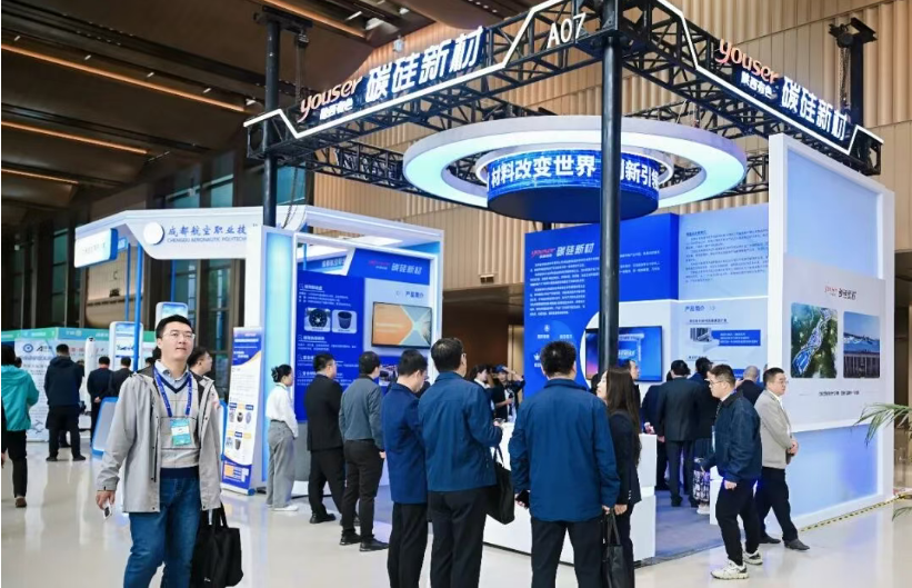 近年來(lái),陜西有色金屬集團(tuán)深化改革創(chuàng)新,以“著力科技自立自強(qiáng),建設(shè)現(xiàn)代產(chǎn)業(yè)體系”為著力點(diǎn),錨定“千百十一”高質(zhì)量發(fā)展階段性目標(biāo),轉(zhuǎn)型升級(jí)傳統(tǒng)產(chǎn)業(yè),培育發(fā)展戰(zhàn)新產(chǎn)業(yè),前瞻布局未來(lái)產(chǎn)業(yè)。本次參展,碳硅新材以“碳硅筑新,智領(lǐng)未來(lái)”為核心主題,深度融合企業(yè)技術(shù)基因與產(chǎn)業(yè)特性,展出中間相瀝青基碳纖維及其復(fù)材、高性能樹(shù)脂、金屬基復(fù)材、碳陶剎車(chē)盤(pán)、碳陶熱場(chǎng)、超韌氧化鋁粉體、高純碳化硅粉體等37件戰(zhàn)新類(lèi)產(chǎn)品。通過(guò)視覺(jué)呈現(xiàn)、互動(dòng)體驗(yàn)等多維度協(xié)同,打造“沉浸式技術(shù)展示+精準(zhǔn)化合作對(duì)接”的創(chuàng)新展出形式,受到復(fù)合材料行業(yè)專(zhuān)家一致好評(píng),吸引了眾多行業(yè)從業(yè)者參觀駐足,有效提升了陜西有色品牌識(shí)別度。參展產(chǎn)品體現(xiàn)了碳硅新材與國(guó)內(nèi)知名高校院士專(zhuān)家團(tuán)隊(duì)的深度合作,不僅性能優(yōu)勢(shì)顯著,更具備成熟的產(chǎn)業(yè)化落地能力,充分彰顯“技術(shù)引領(lǐng)、產(chǎn)研融合”的發(fā)展特色。