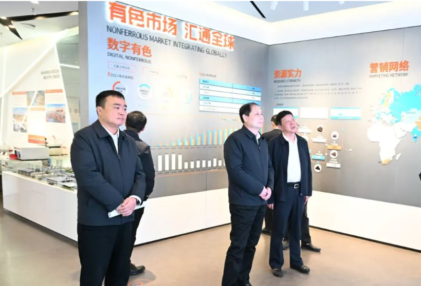 座談前,呂強(qiáng)一行在霍學(xué)杰陪同下參觀了陜西有色金屬集團(tuán)展廳。