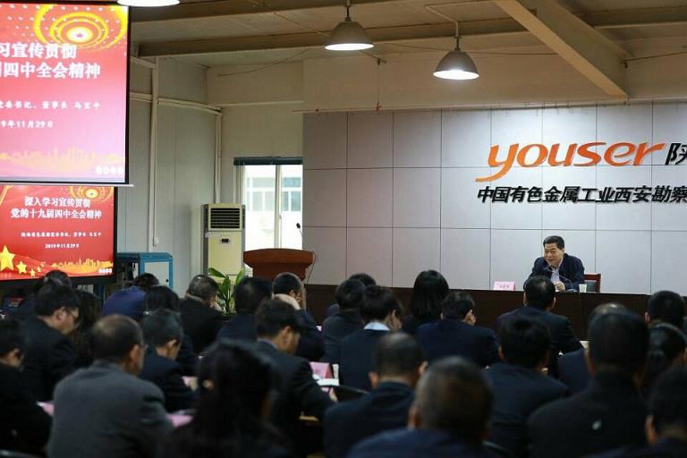 11月29日下午,陜西有色集團(tuán)黨委書記、董事長(zhǎng)馬寶平到權(quán)屬企業(yè)西安勘察院宣講黨的十九屆四中全會(huì)精神。