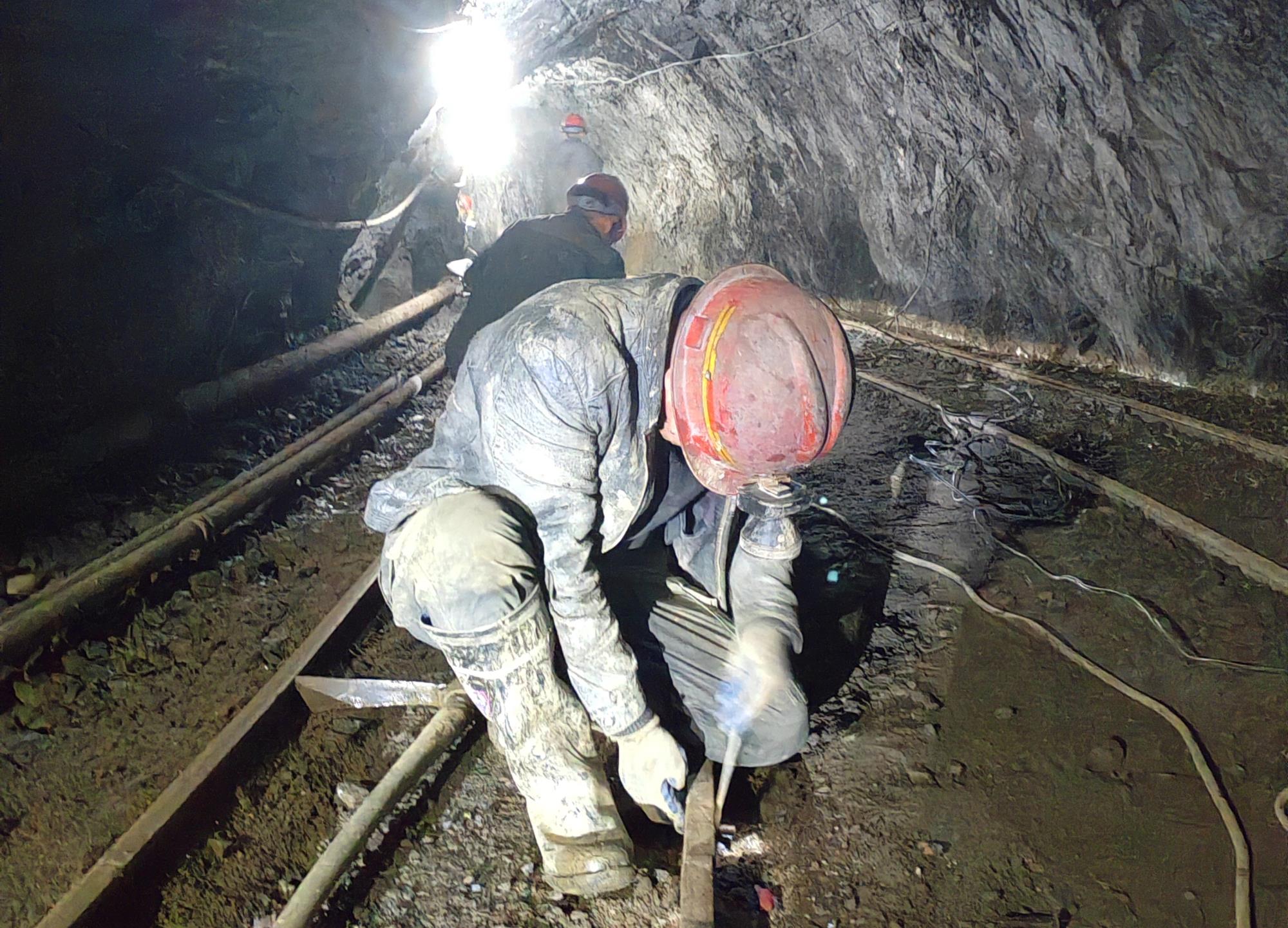 峰崖鉛鋅礦 1月28日(除夕),峰崖鉛鋅礦一線崗位工常大娃在清理坑道排水溝。