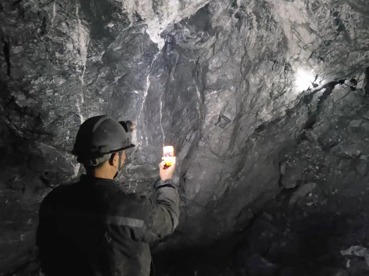 2月4日(大年初七),采場職工鮮龍兵正在檢查工作面空氣質(zhì)量,為井下作業(yè)面開工做好準(zhǔn)備。