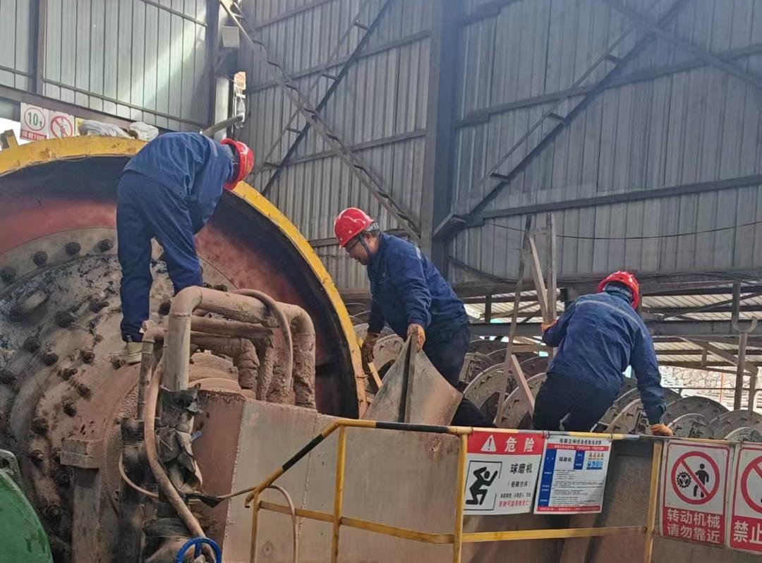 山陽秦金 2月3日(大年初六),為實(shí)現(xiàn)一季度開門紅、開門穩(wěn),山陽秦金職工對(duì)選礦部球磨工段球磨機(jī)等設(shè)備進(jìn)行維修保養(yǎng)。