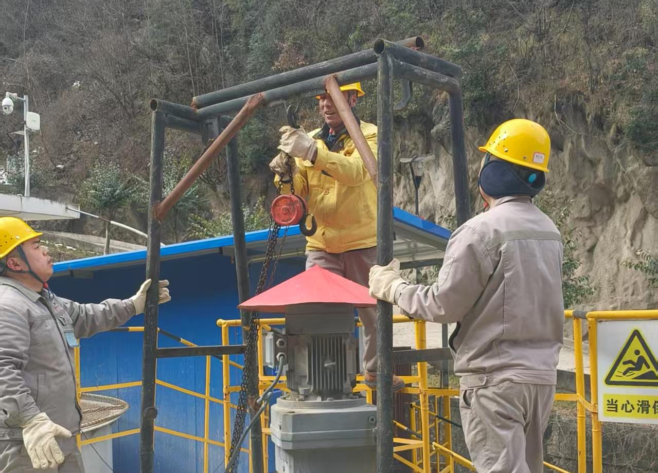 山陽秦鼎 2月2日(大年初五),在山陽秦鼎公司充填站,一線崗位工正在檢修閥門。