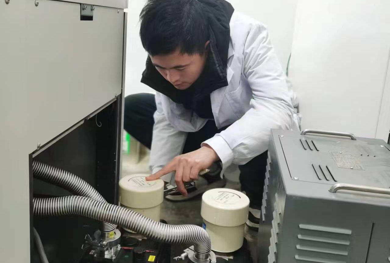 華拓檢測公司 春節(jié)期間,檢測員李釗對(duì)X-射線熒光光譜儀進(jìn)行維護(hù)保養(yǎng)。