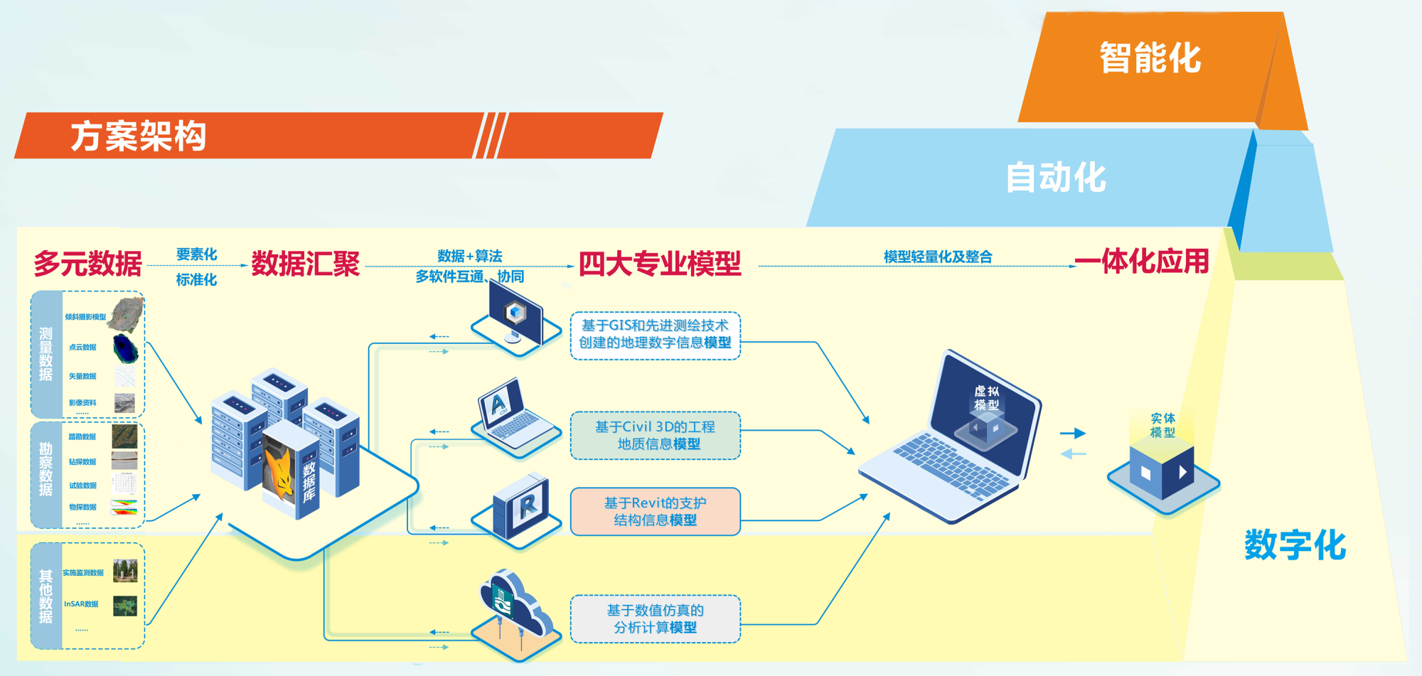 該方案以工程數(shù)據(jù)中心為核心,創(chuàng)新性地集成了地質(zhì)信息模型、結(jié)構(gòu)分析模型、施工模擬模型和運(yùn)維監(jiān)測(cè)模型四大數(shù)字化模塊,實(shí)現(xiàn)了從數(shù)據(jù)采集、模型構(gòu)建到智能應(yīng)用的完整閉環(huán)。經(jīng)多個(gè)重大項(xiàng)目驗(yàn)證,該技術(shù)使巖土工程方案設(shè)計(jì)效率提升40%,施工風(fēng)險(xiǎn)預(yù)警準(zhǔn)確率達(dá)92%,有效解決了傳統(tǒng)工程中數(shù)據(jù)孤島、協(xié)同困難等痛點(diǎn)問(wèn)題。