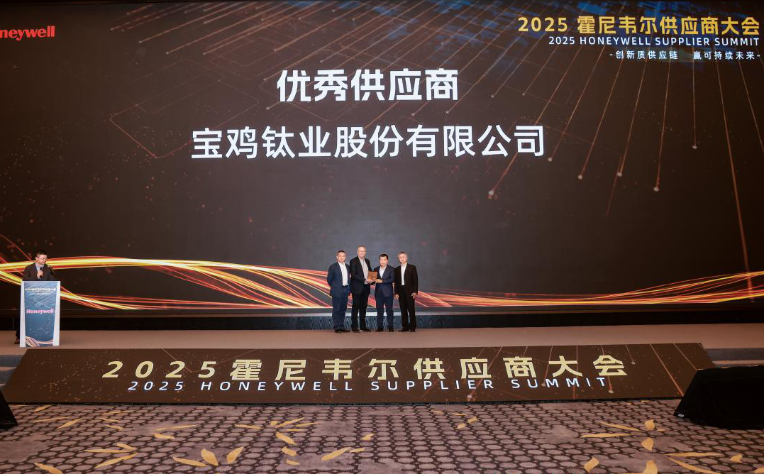 在今年2月底召開的2025霍尼韋爾中國區(qū)供應(yīng)商大會(huì)上,寶鈦股份喜獲“優(yōu)秀供應(yīng)商”稱號(hào)。美國霍尼韋爾是一家享譽(yù)全球的高科技公司,其旗下的霍尼韋爾航空航天集團(tuán)所提供的各類產(chǎn)品和服務(wù),幾乎覆蓋了全球商用和航天飛機(jī),在行業(yè)內(nèi)具有廣泛而深遠(yuǎn)的影響力。該榮譽(yù)既是對(duì)寶鈦產(chǎn)品、服務(wù)的高度認(rèn)可,也是寶鈦拓展全球市場的一個(gè)縮影。