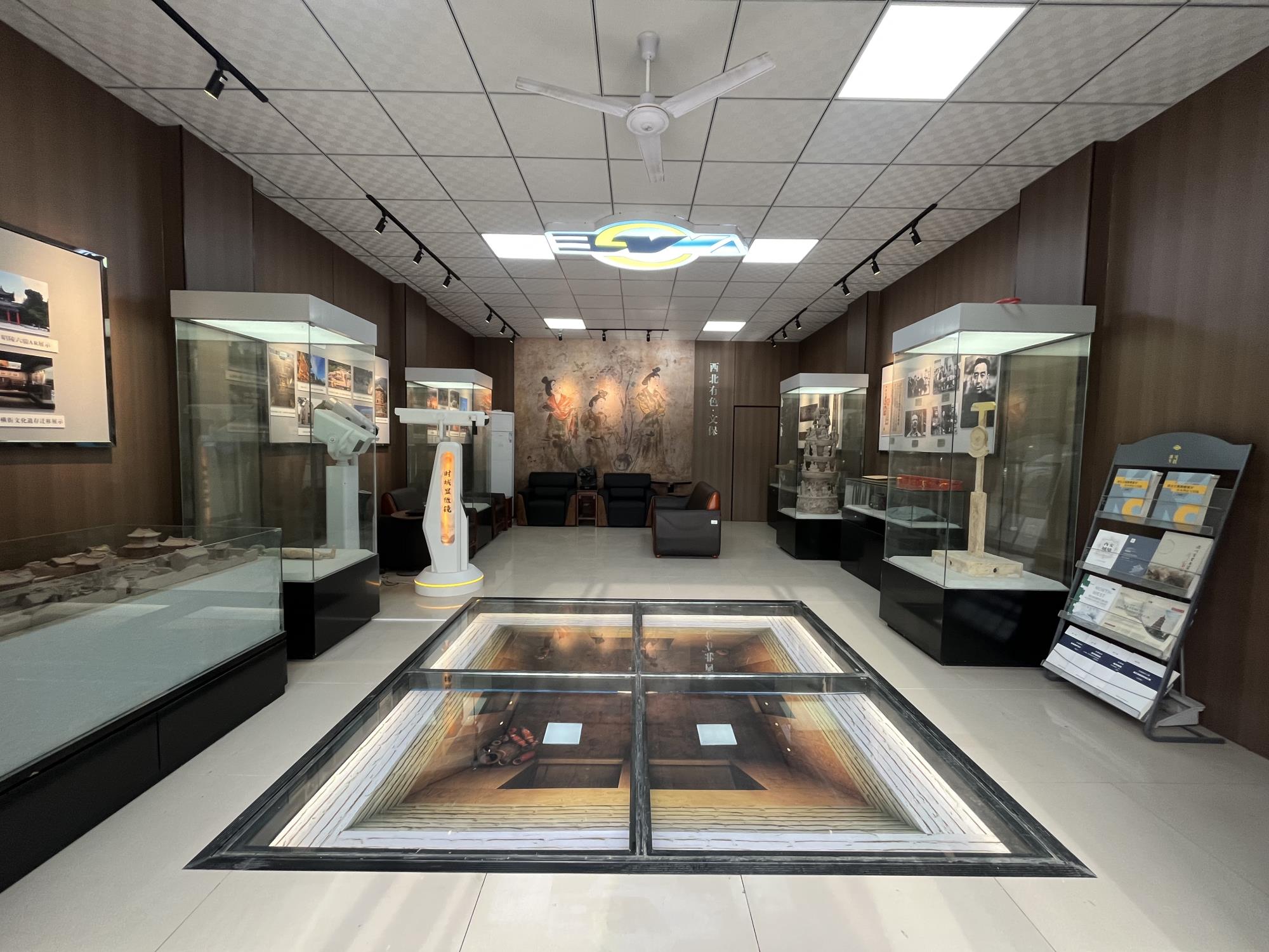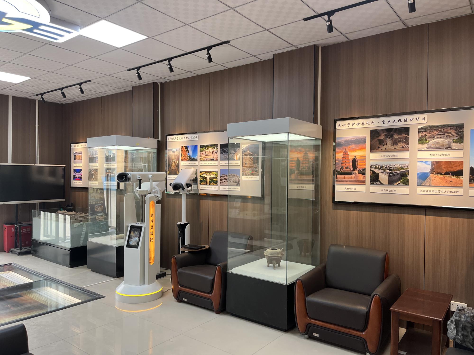 展廳占地約50平方米,5塊精心設(shè)計的展板與7個獨具匠心的展柜錯落有致,近10件文創(chuàng)產(chǎn)品風(fēng)格各異,全方位呈現(xiàn)了公司在傳統(tǒng)巖土文物保護、文物遷移、文物展陳利用、文物保護數(shù)字化等多個領(lǐng)域的豐碩成果與創(chuàng)新實踐,串聯(lián)起公司文保產(chǎn)業(yè)的全鏈條發(fā)展脈絡(luò)。展廳還利用3D掃描、虛擬現(xiàn)實(VR)、增強現(xiàn)實(AR)以及高清投影等數(shù)字化設(shè)備等,為展陳提供了有力技術(shù)加持。借助現(xiàn)場操作演示,原本靜置于展廳的壁畫、模型被賦予新“生命”,在虛實交織中煥發(fā)新的活力。