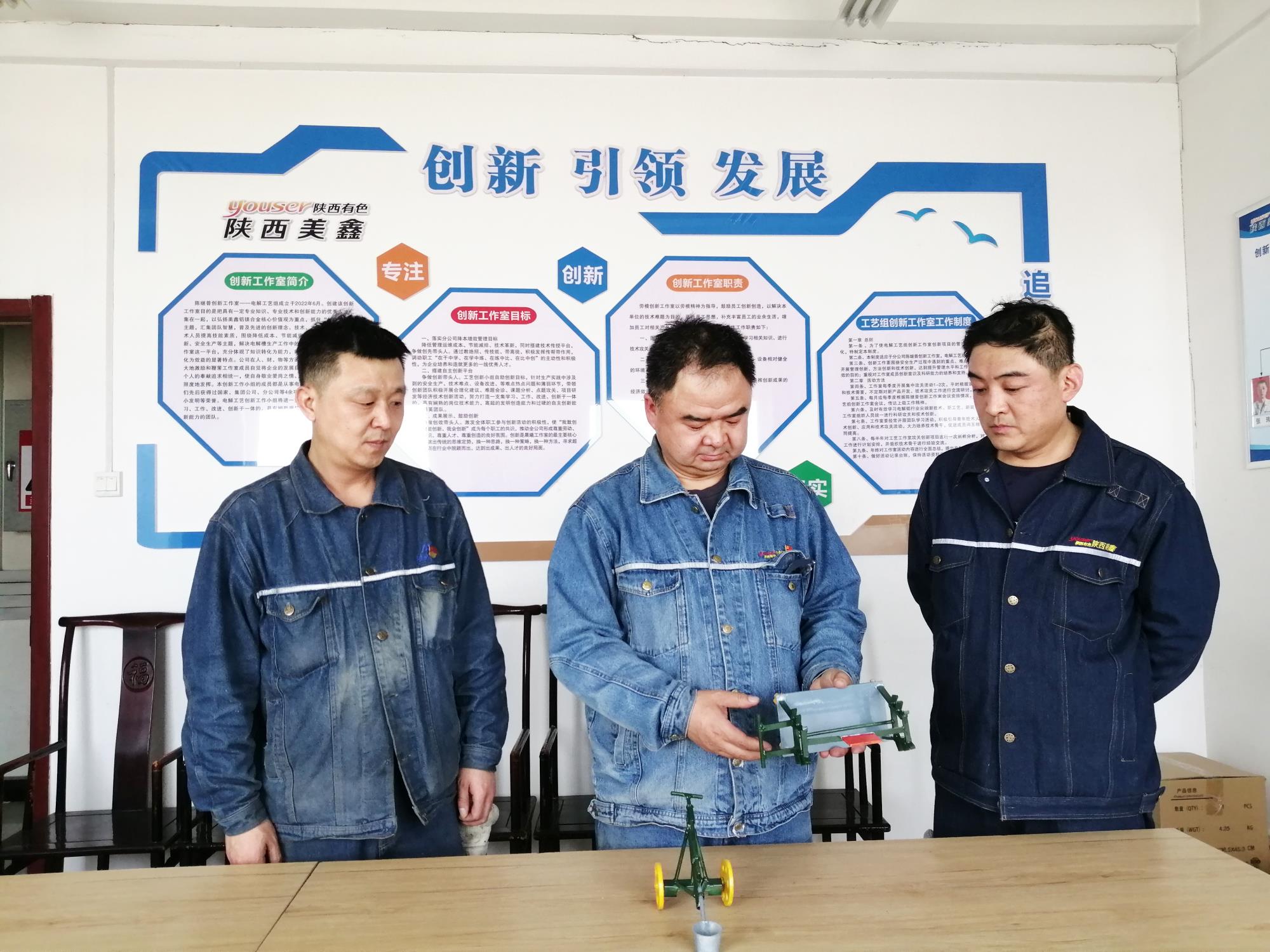 陳繼普有句口頭禪:“一個(gè)人再能,頂不上大伙兒抱團(tuán)”。2023年1月,公司成立“陳繼普創(chuàng)新工作室”,他也迅速轉(zhuǎn)變身份,提出“問題池—攻關(guān)鏈—成果樹”的創(chuàng)新機(jī)制,定期組織“難題診斷會”,對“難點(diǎn)、痛點(diǎn)”問題進(jìn)行攻堅(jiān);鼓勵(lì)一線工人主動(dòng)提升技能水平,立足崗位積極參與技術(shù)創(chuàng)新。這種“全新”的模式,極大的促進(jìn)了技術(shù)革新的速度,針對氧化鋁下料工藝升級后暴露的能耗痛點(diǎn)實(shí)施精準(zhǔn)改造,改造完成后,一年節(jié)約用電24萬多度。帶頭撰寫的《鋁電解新系列啟動(dòng)高位殘極在線消化方法的創(chuàng)新與應(yīng)用》,通過科學(xué)換極策略與周期優(yōu)化,實(shí)現(xiàn)殘極高效循環(huán)利用,顯著降低成本和能耗,兼具經(jīng)濟(jì)效益與環(huán)保價(jià)值。在他的帶領(lǐng)下,車間黨支部成功斬獲陜西省國資系統(tǒng)“標(biāo)準(zhǔn)化規(guī)范化示范黨支部”,為陜西有色金屬集團(tuán)此次7個(gè)獲得“標(biāo)準(zhǔn)化規(guī)范化建設(shè)示范黨支部”榮譽(yù)的黨組織之一。