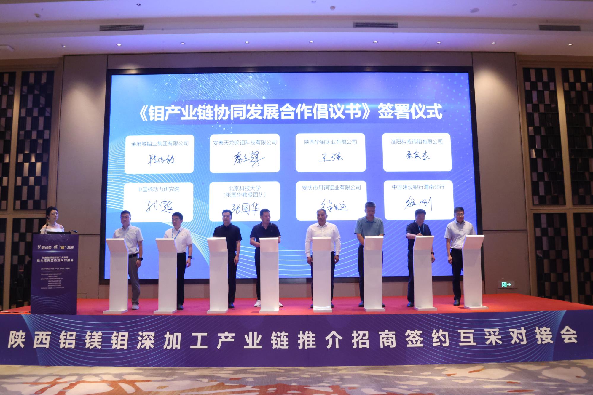會(huì)上,渭南市華州區(qū)發(fā)布了鉬產(chǎn)業(yè)發(fā)展布局規(guī)劃,產(chǎn)業(yè)鏈相關(guān)合作銀行中國建設(shè)銀行陜西分行發(fā)布金融政策。由省鋁鎂鉬深加工產(chǎn)業(yè)鏈鏈主企業(yè)金鉬集團(tuán)牽頭、聯(lián)合產(chǎn)業(yè)鏈上下游企業(yè)、科研院所、高校及金融機(jī)構(gòu)共同發(fā)起簽署了《鉬產(chǎn)業(yè)鏈協(xié)同發(fā)展合作倡議書》。