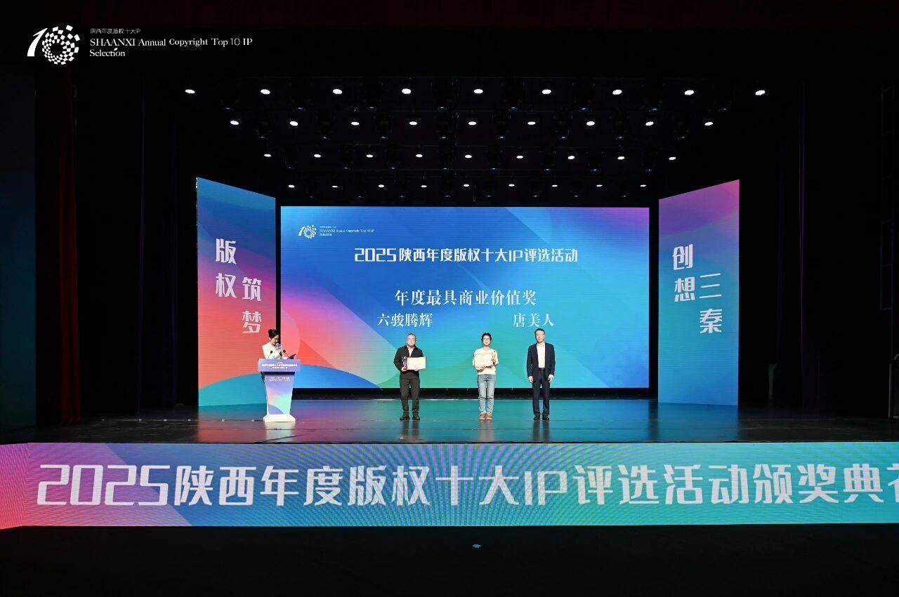 本次評選由陜西省版權(quán)局指導(dǎo),陜西省版權(quán)協(xié)會、陜文投集團、陜西日報社共同主辦,是陜西省版權(quán)產(chǎn)業(yè)領(lǐng)域的一項重要權(quán)威評選。活動歷經(jīng)資質(zhì)審核、綜合評審、網(wǎng)絡(luò)投票、現(xiàn)場答辯四輪嚴格篩選,最終評選出22個獲獎項目?!读E騰輝》憑借其深厚的文化內(nèi)涵與卓越的市場轉(zhuǎn)化能力,成為本次評選中商業(yè)轉(zhuǎn)化類IP的典型代表。