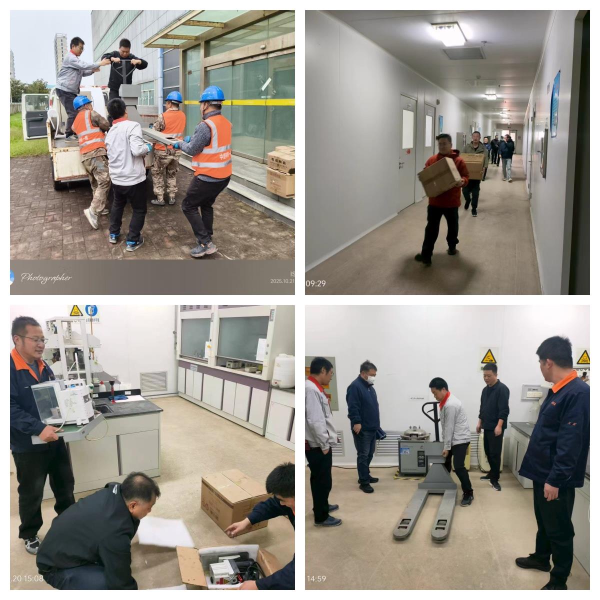 期間,天宏硅業(yè)提前完成設(shè)備清點、打包及手續(xù)辦理,為搬遷提供前置保障并參與設(shè)備搬遷全過程;光電科技多部門聯(lián)動—— 動能中心黨支部組織黨員投身儀器搬運、布線擺放工作;科創(chuàng)區(qū)工程建設(shè)管理組專項解決大件搬運難題;后勤中心主動承接設(shè)備運輸與家具拆裝;電池事業(yè)部提供辦公桌椅支持;科技規(guī)劃部及項目組全程參與協(xié)調(diào)各方,確保搬運安全、布置合理。各參與方克服時間緊、任務(wù)重的挑戰(zhàn),以實干作風(fēng),保障行動高效落地。